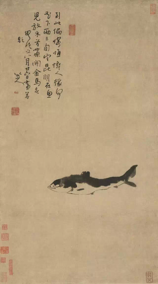 八大山人花鸟承袭陈淳、徐渭写意花鸟画的传统,发展为阔笔大写意画法,其特点是通过象征寓意的手法,并对所画的花鸟、鱼虫进行夸张,以其奇特的形象和简练的造型,使画中形象突出,主题鲜明,甚至将鸟、鱼的眼睛画成“白眼向人”,以此来表现自己孤傲不群、愤世嫉俗的性格,从而创造了一种前所未有的花鸟造型。他的山水画初师董其昌,后又上窥黄公望、倪瓒,多作水墨山水,笔墨质朴雄健,意境荒凉寂寥。亦长于书法,擅行、草书,宗法王羲之、王献之、颜真卿、董其昌等,以秃笔作书,风格流畅秀健。